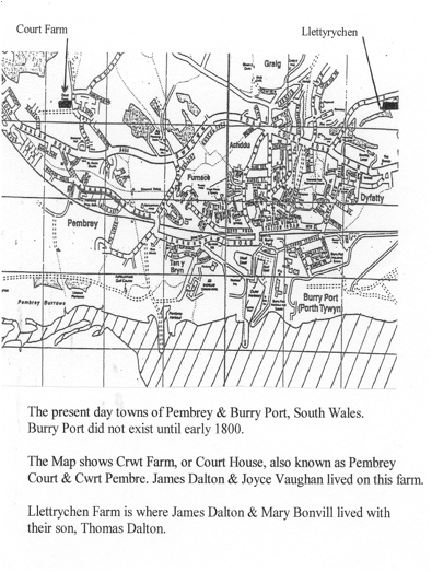 Some research was done by the Wales/English side of the Dalton family and by members of the DGS. Also Rodney Dalton joined the Carmarthenshire Family Historical Society in 1998 and this Society searched for our Dalton family in hundreds of records from the years of 1651 to after 1800. Hundreds of E-Mail & documents with sources were received by Rod Dalton on these Dalton's from South Wales.