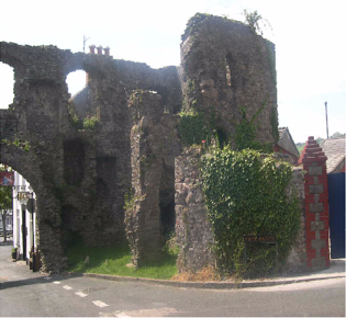Main entrance to Kidwelly Castle in the town of Kidwelly. |