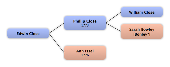 |  Phillip Close | 1773 |  Ann Issel | 1776 |